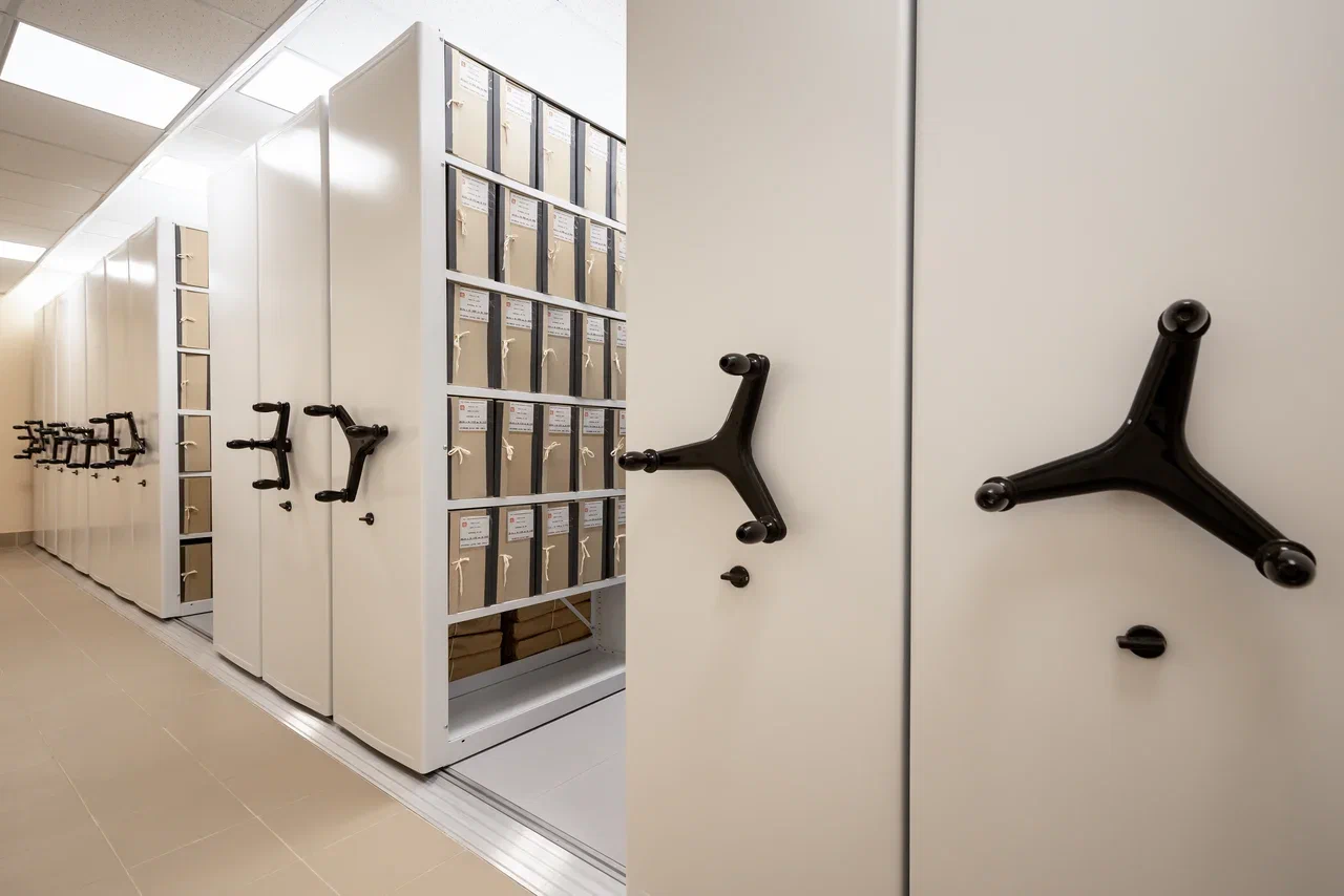 У нас есть раздвижные стеллажи для архива с механическим и электрическим приводом, а также с современной системой компьютерного управления. Два последних варианта максимально сэкономят ваши силы и время.