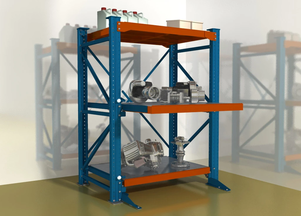 В составе дополнительно могут идти верстаки, столы, тумбы, дополнительные стойки. Все металлические стеллажи имеют защиту от одновременного выдвижения полок, их фиксацию в рабочем (выдвинутом) и в состоянии - «задвинута».